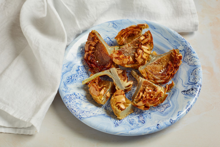 This carciofi alla giudia recipe hails from Rome's Jewish quarter, and sees artichokes fried until crispy on the outside and beautifully tender inside. A simple antipasto for when artichokes are at their best.