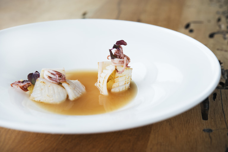 Although named after two elements of this elegant starter, the rosemary and chickpeas (or ceci in Italian) are taken to new heights with a clear squid broth and delicate pieces of crispy, golden seared squid. Although keeping the key flavours pure, Viviana Varese adds a hint of spice to the chickpeas and the wonderful woody aroma of rosemary in the shape of an infused oil. For more tips about how to cook chickpeas see our informative guide.